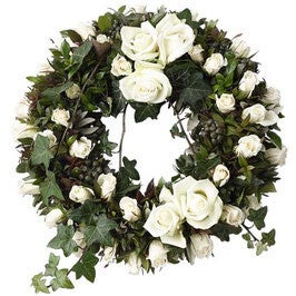 Les coeurs de 33 à 50cm, coeurs ajouré de 22 à 43cm et couronnes de 36cm à 75cm, pour un hommage, comprennent un ruban.